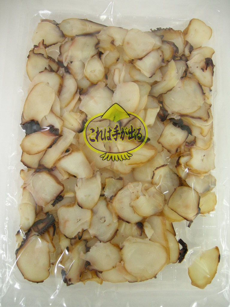 パッと見た感じ、たこのくんせいのように見えますが、実はいかなんです。硬くはないのですが、ちょっと歯ごたえがあります。