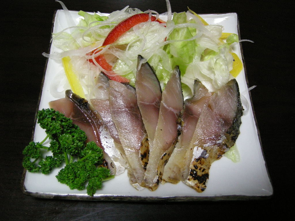 野菜をそえて、サラダにしても美味しいです。お好みで、マリネ風にしてもいいですね。